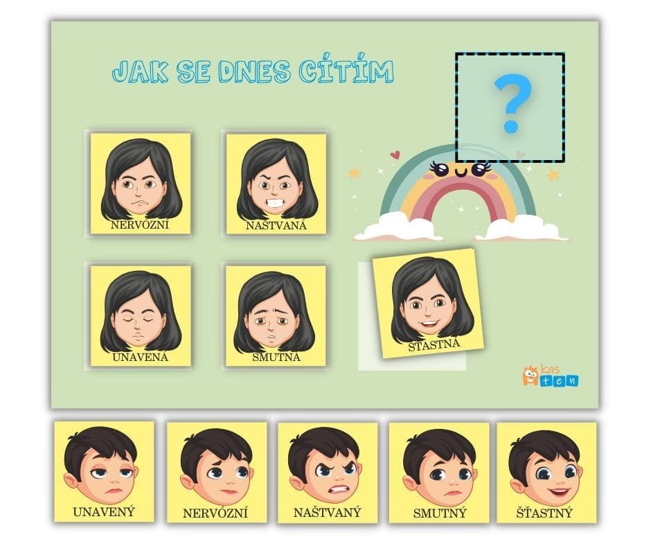 Účelem této pomůcky je umožnit dětem vyjádřit jejich rozpoložení. Můžete tak vyhodnotit nejen rozpoložení jednoho dítěte, ale také pocity celé skupiny ráno, po vyučování nebo dnes celkově.