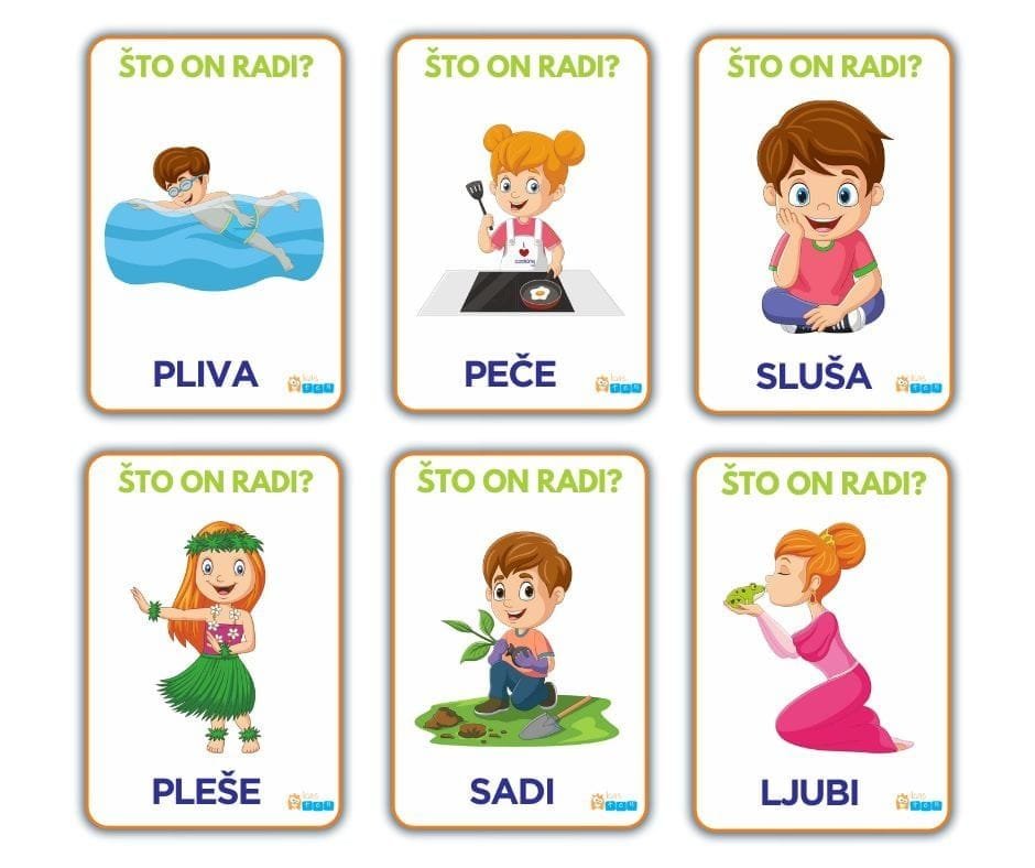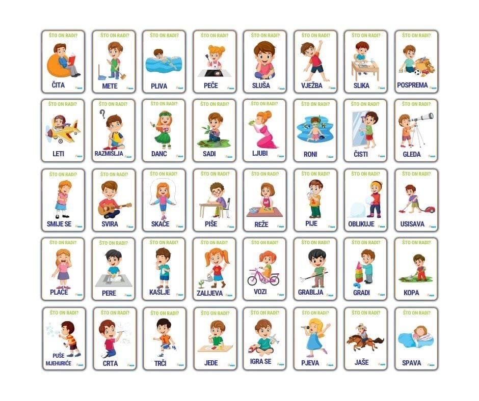 Postavite pitanje što junaci na karticama rade, a mališani će zasigurno rado imenovati radnju koja je prikazana na kartici.