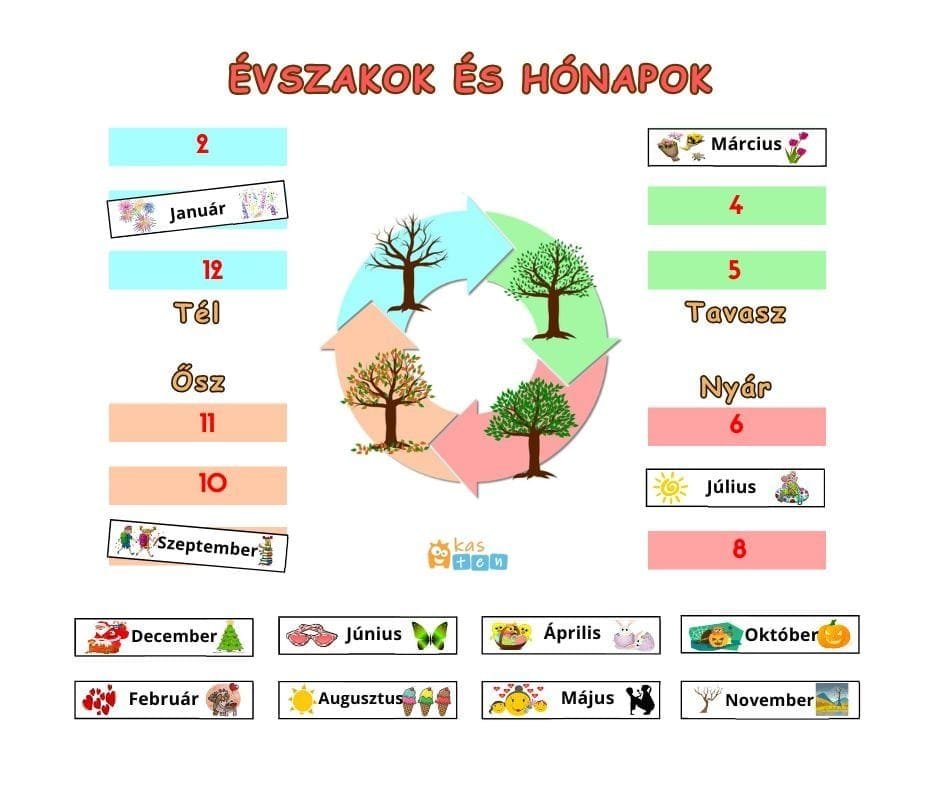 Tedd szórakoztatóvá és könnyűvé az év hónapjainak megtanulását! ⛄️ ☔️E feladatsor segítségével gyermeked gyorsan elsajátítja a hónapok neveit, sorrendjüket és évszakokhoz való kapcsolódásukat. Minden plakáton szerepel a hónap neve és hozzá kapcsolódó vidám illusztrációk. A tanulás hatékony és tartós módja! ❄️