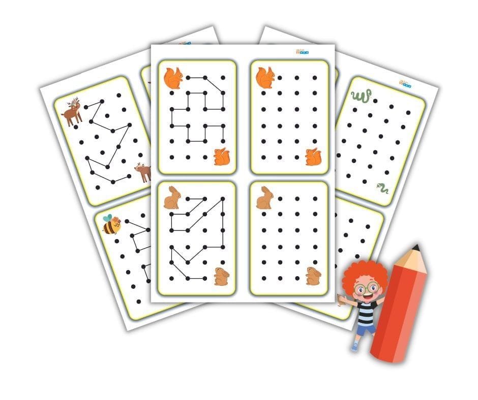 A feladat szerint a gyermekeknek az adott minta alapján kell összekötniük a pontokat vonalakkal.