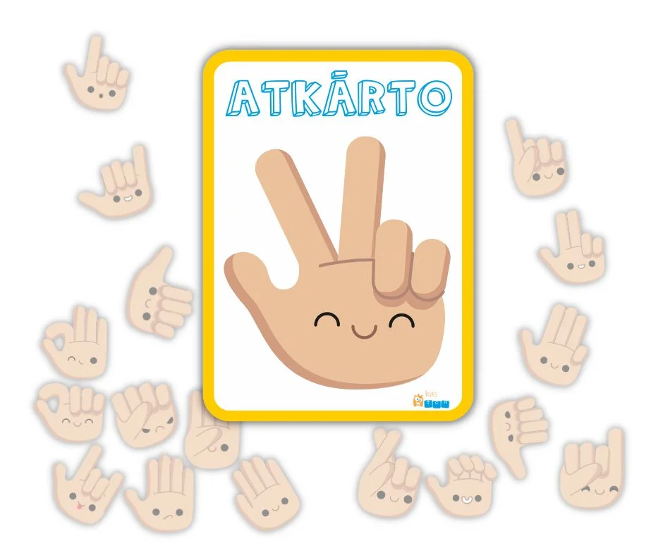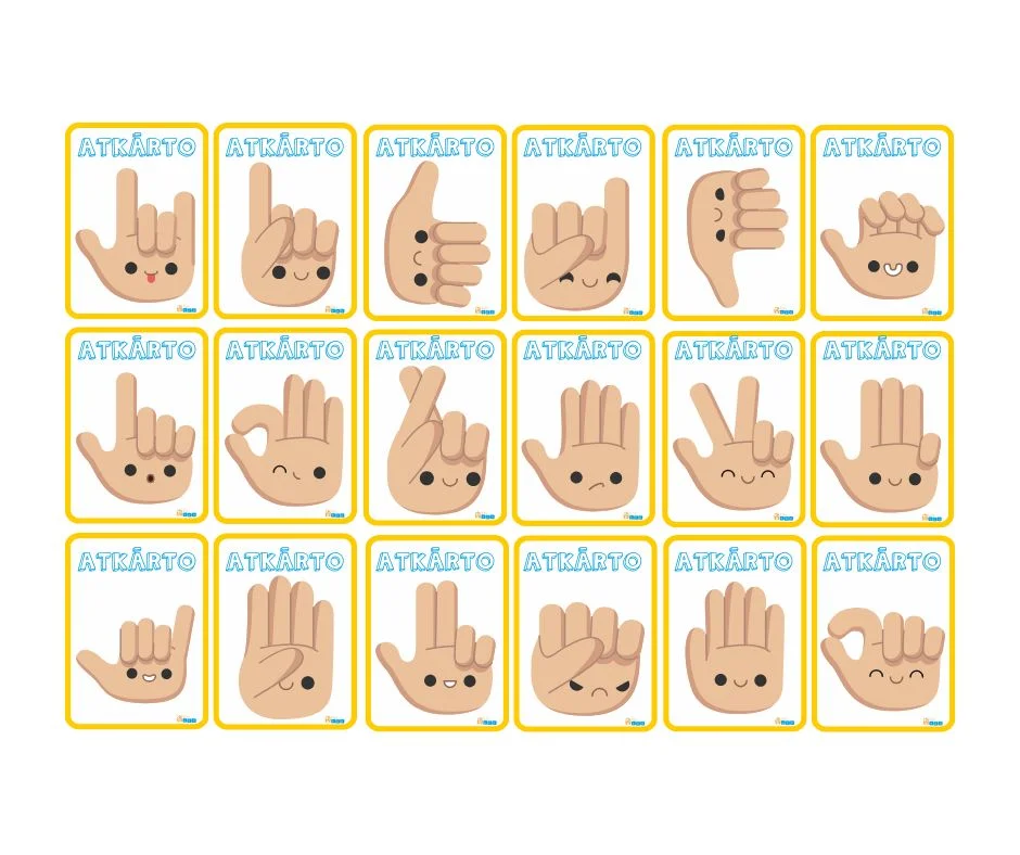 Komplektācija: 9 A4 formāta lapas, 18 pirkstu kombinācijas.