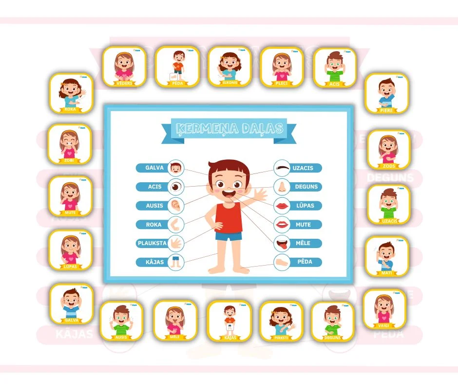 Rīks „Ķermeņa daļas” veicinās ķermeņa daļu ātrāku apguvi un iegaumēšanu, redzot katras ķermeņa daļas attēlu.