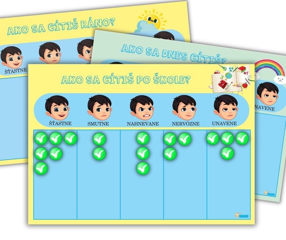 Táto pomôcka pomáha deťom vyjadrovať svoje pocity. Môžete pomocou nej posúdiť nielen psychický stav jedného dieťaťa, ale aj psychický stav celej skupiny, a to ráno, po škole či v daný deň.